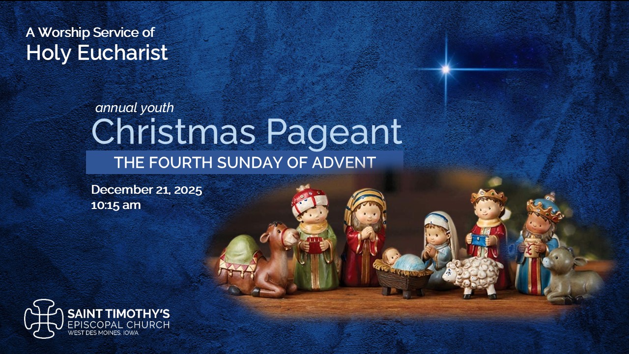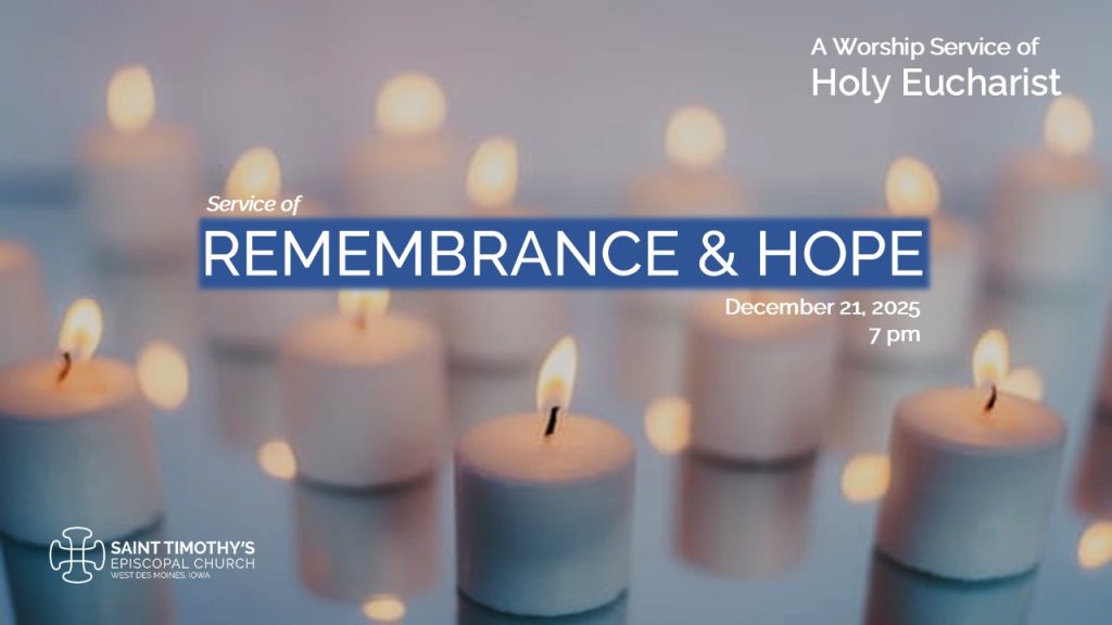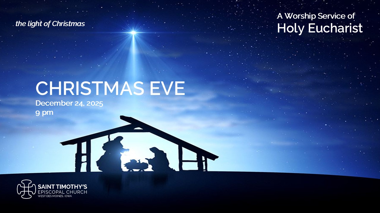 We will not hold a Christmas Day service at St. Timothy’s this year. Instead, we encourage those interested in attending a service on the 25th to attend worship at St. Paul’s, Des Moines (815 High Street).